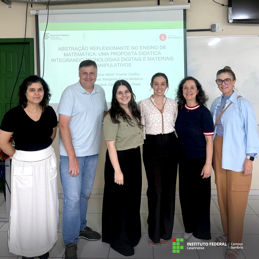 No dia 10 de dezembro de 2025, a estudante Nicóli Vicente Coelho viveu um momento marcante em sua trajetória acadêmica ao apresentar o Trabalho de Conclusão de Curso no curso de Licenciatura em Matemática do Instituto Federal Catarinense – Campus Sombrio. O TCC, intitulado “Abstração reflexionante no ensino de matemática: uma proposta didática integrando tecnologias digitais e materiais manipulativos”, evidencia o compromisso com práticas pedagógicas inovadoras no ensino de Matemática.