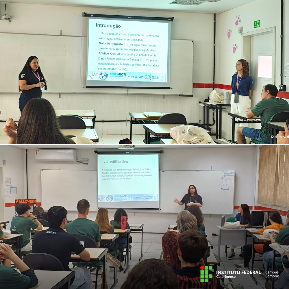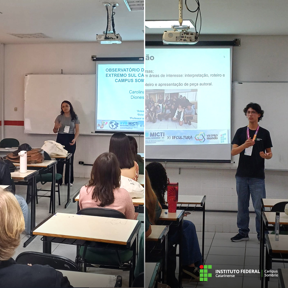 O Instituto Federal Catarinense (IFC) – Campus Sombrio participou, entre os dias 11 e 13 de novembro de 2025, da Mostra Nacional de Iniciação Científica e Tecnológica Interdisciplinar (MICTI), realizada presencialmente no IFC São Francisco do Sul. O evento, promovido pelo IFC, reúne projetos de Ensino, Pesquisa, Extensão e Inovação com o objetivo de divulgar à comunidade os resultados de ações desenvolvidas em diferentes áreas do conhecimento.