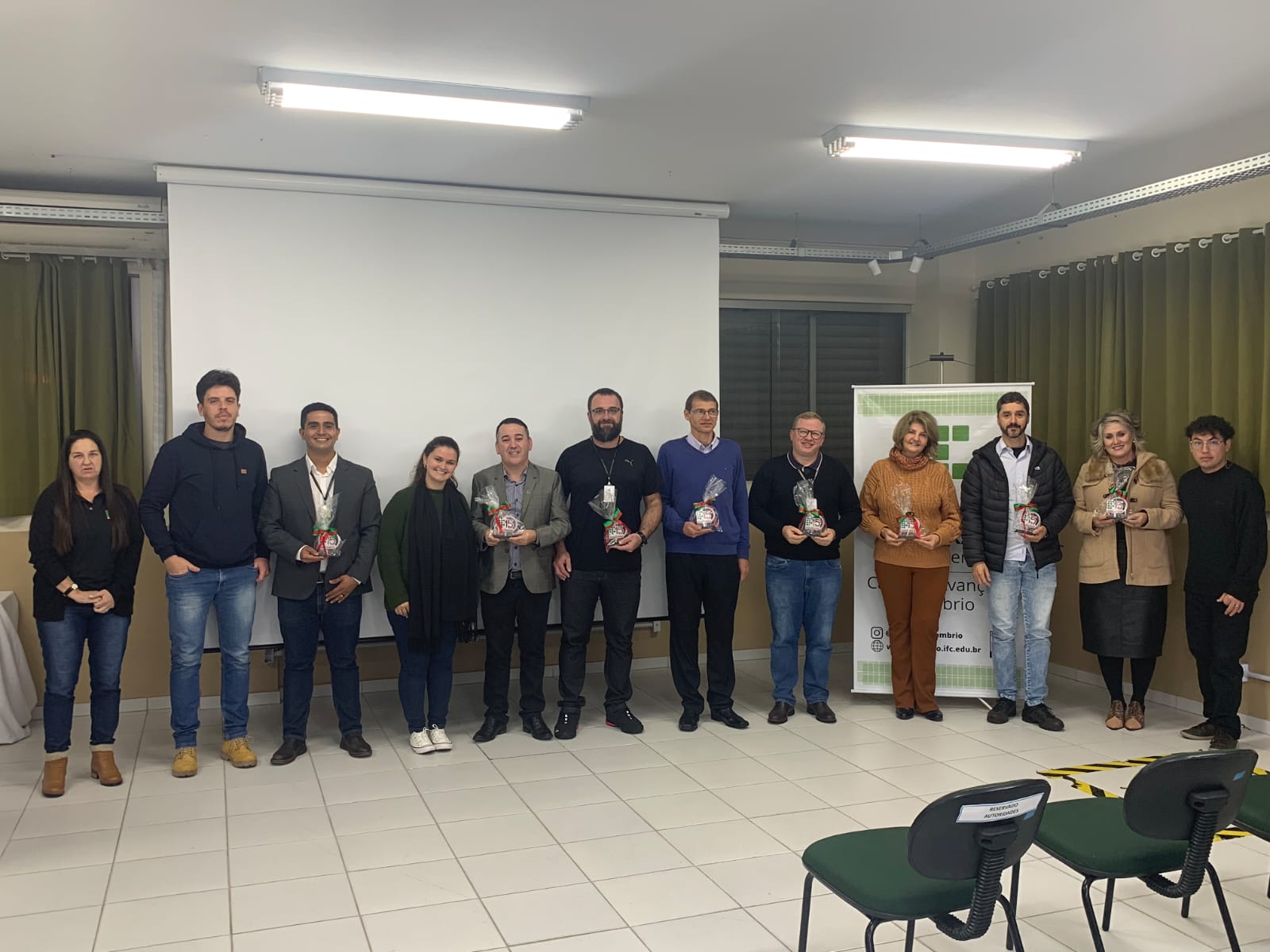 Em um momento emocionante, homenageamos os servidores já aposentados Elizete Maria Possamai Ribeiro, diretora do CAS na gestão 2016 a 2020, e Rosa Duilia Alves Bratti. Além disso, os ex-diretores, o atual diretor e o técnico Cristiano Pochmann, representando o Campus Santa Rosa do Sul, receberam merecidas homenagens, assim como a professora Sandra Vieira e o técnico Ulisses Tavares.